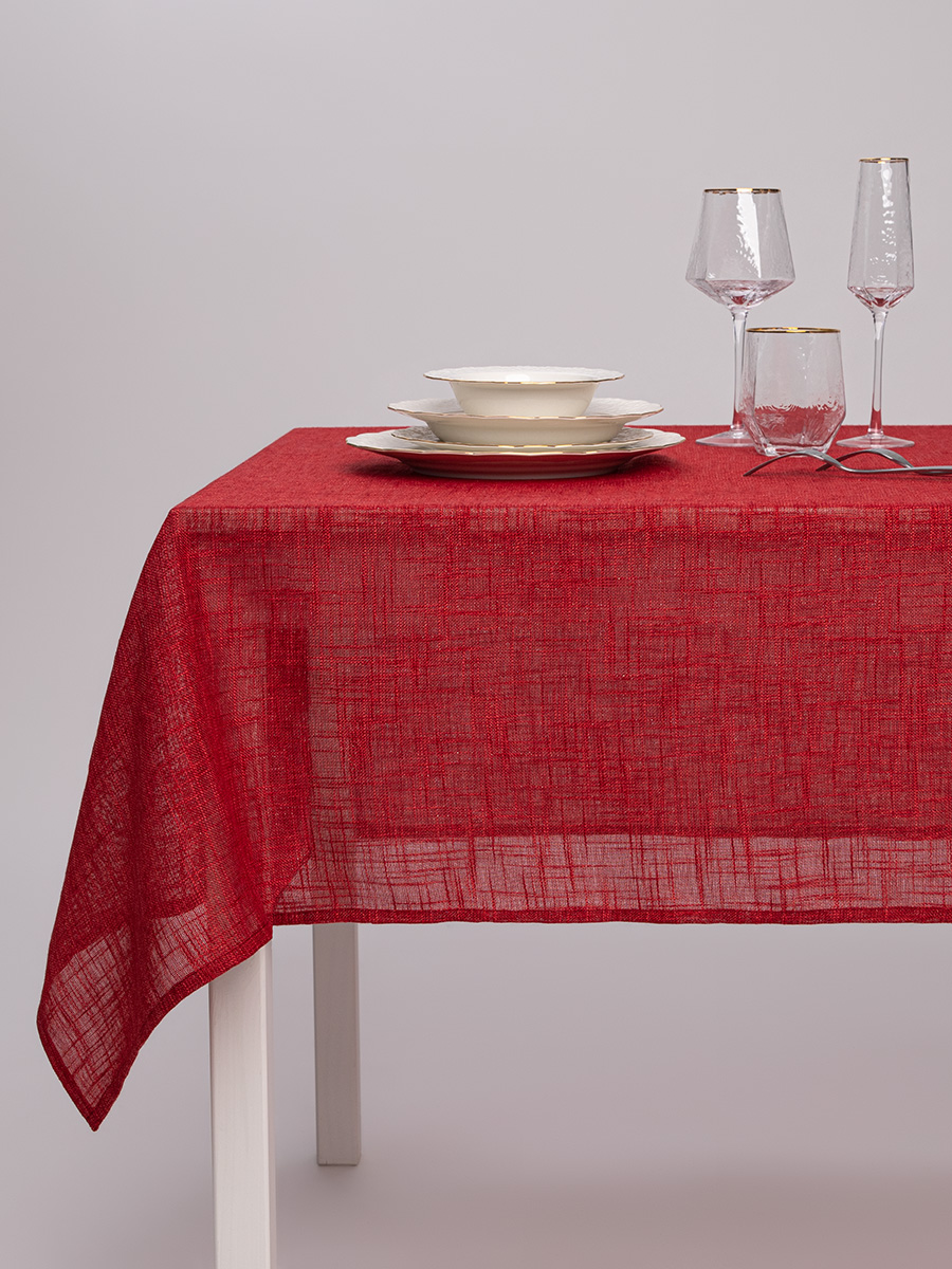 Скатерть 140x200см DE'NASTIA Праздничная блестящая красная 100% полиэстер