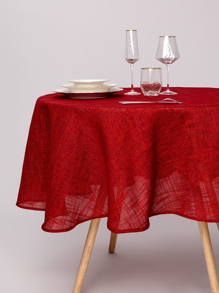 Скатерть D180см DE'NASTIA Праздничная блестящая красная 100% полиэстер