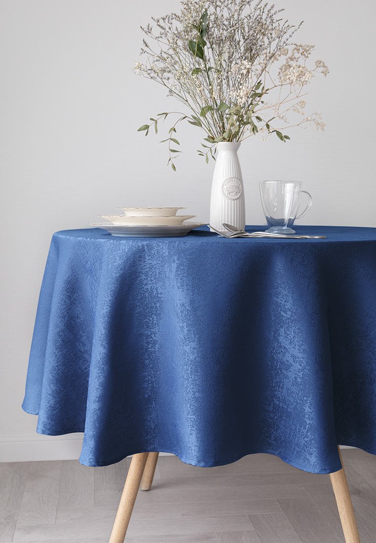 Скатерть 180см DE'NASTIA эффект потёртости синий жаккард полиэстер