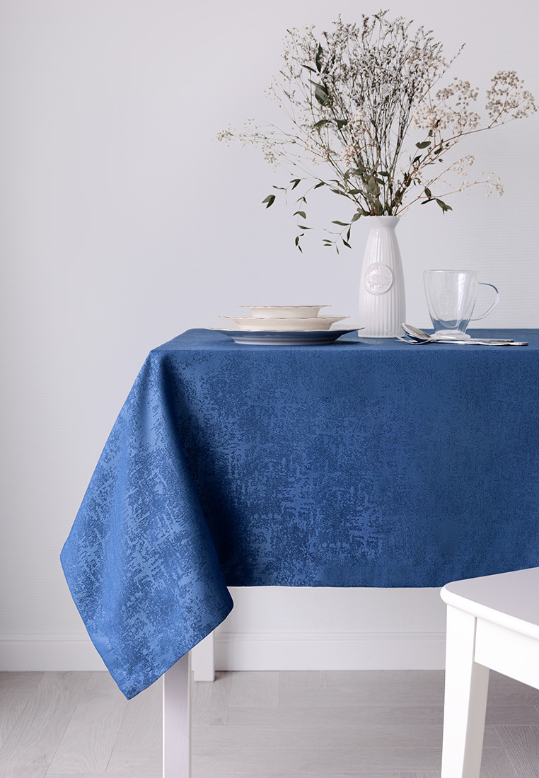 Скатерть 160x250см DE'NASTIA эффект потертости синий жаккард полиэстер