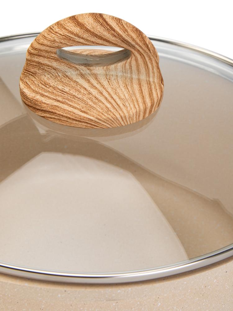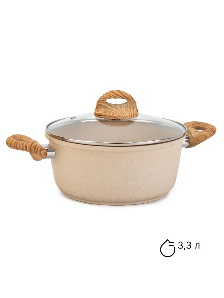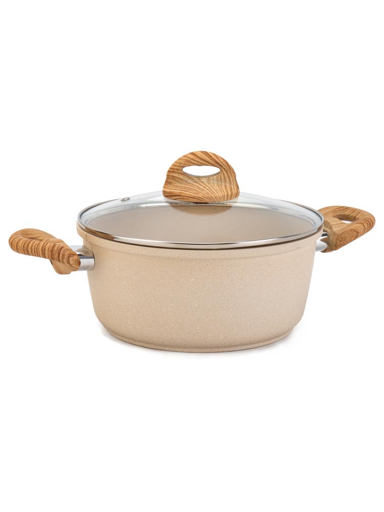 Кастрюля 3,3л CASTA Cream Marble стеклянная крышка с металлическим ободом антипригарное покрытие бакелитовая ручка бежевый жемчуг литой алюминий
