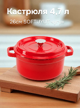 Кастрюля 4,7л 26см SOFTUYUT эмалированная чугун