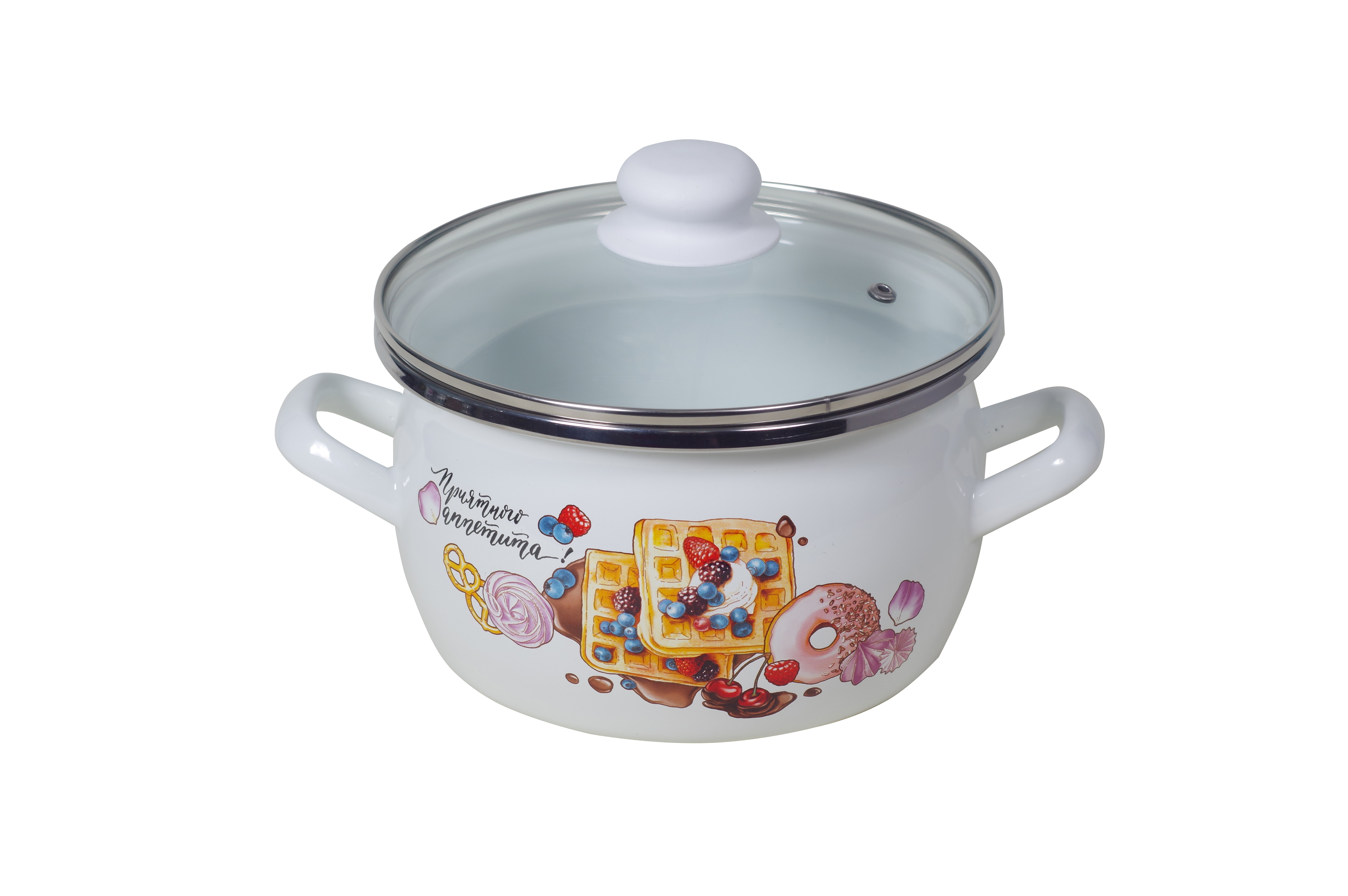 Кастрюля 1,5л OMELIA Десерт сферическая форма стеклянная крышка эмаль