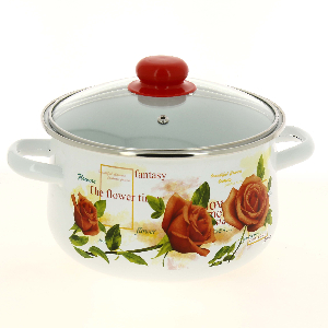 Прочный стальной корпус обеспечивает эффективную тепловую обработку пищевых продуктов и не деформируется в процессе эксплуатации. С внешней стороны кастрюля оформлена изображением цветов.