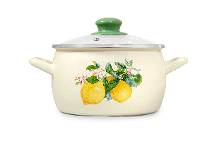 Кастрюля 2,2л 16см METROT ЛИМОНЫ Эксклюзив глубокая со стекллянной крышкой эмаль