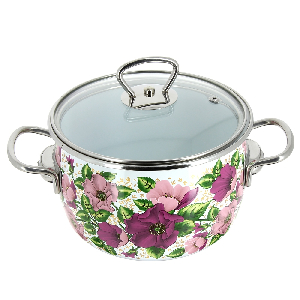 Кастрюля Violeta Vitross выполнена из стали с эмалированным покрытием. Прочный стальной корпус обеспечивает эффективную тепловую обработку и не деформируется в процессе экс плуатации. Такая кастрюля идеальна для тепловой обработки и хранения пищевыхпродуктов. Внешние стенки кастрюли оформлены красочным изображением цветов. Кастрюля оснащена стеклянной крышкой с металлическим ободом и пароотводом, а также удобными стальными ручками.