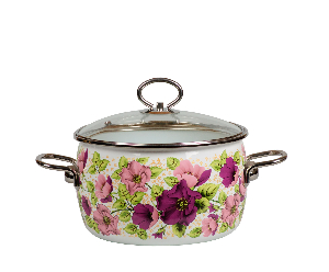 Кастрюля стальная эмалированная, объем 5 л, с крышкой из жаропрочного стекла.