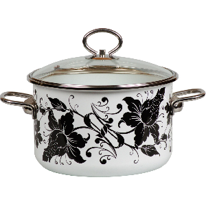 Кастрюля стальная эмалированная, объем 5 л, с крышкой из жаропрочного стекла.