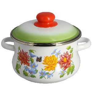 Кастрюля 2л СТАЛЬЭМАЛЬ Цветочная эмалированная сталь