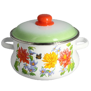 Кастрюля 4л СТАЛЬЭМАЛЬ Цветочная эмалированная сталь