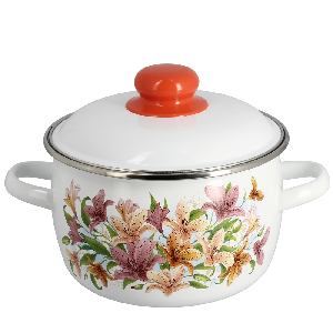 Кастрюля 2л СТАЛЬЭМАЛЬ Лилии сферическая форма эмалированная сталь