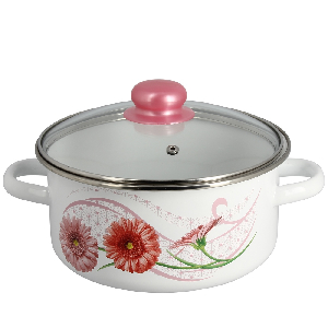 Кастрюля 3л СТАЛЬЭМАЛЬ Герберы цилиндрическая форма эмалированная сталь