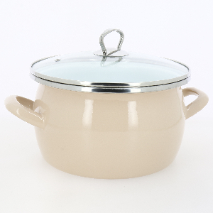 Кастрюля 4л сферическая форма стеклянная крышка нержавеющая ручка белый/кофейный эмаль