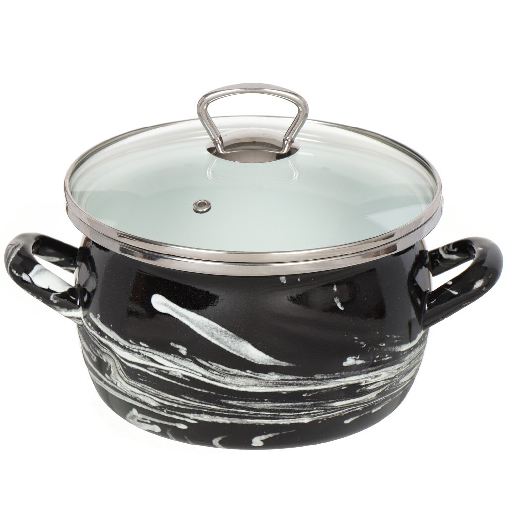Кастрюля 2,5л Шейк сферическая форма стеклянная крышка нержавеющая ручка белый/черно-белый эмаль