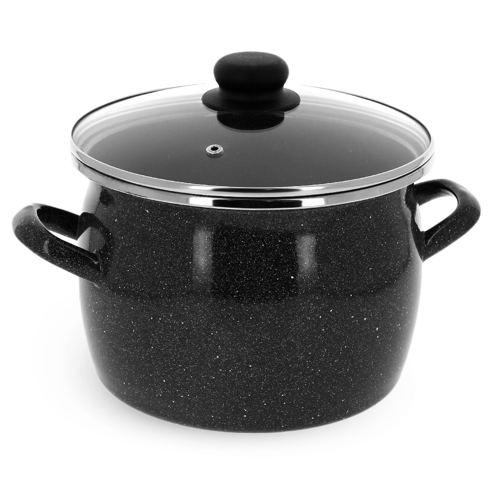 Кастрюля 5л сферической формы со стеклянной крышкой, полыми ручками, серый гранит внутри, серый гранит снаружи стальная эмалированная