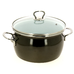 Кастрюля 4л сферической формы со стеклянной крышкой, нержавеющими ручками, белая внутри, темно-серый хром снаружи стальная эмалированная