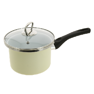 Ковш 1,5л с пластиковой ручкой, цилиндрической формы со стеклянной крышкой, белая внутри, бежевая снаружи стальной эмалированный