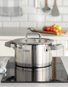 Кастрюля 2,5л 18x10,5см DE'NASTIA с крышкой силикон серый нержавеющая сталь