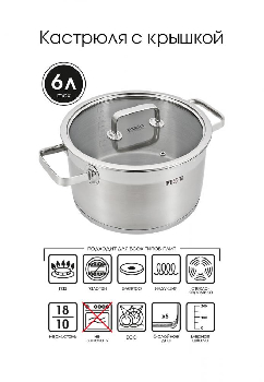Кастрюля 6л DE'NASTIA с крышкой стальная фурнитура нержавеющая сталь