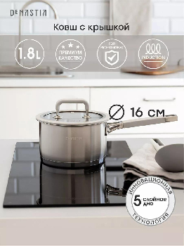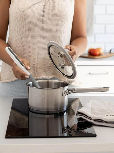 Ковш 1,8л 16x9,5см DE'NASTIA с крышкой силикон серый нержавеющая сталь