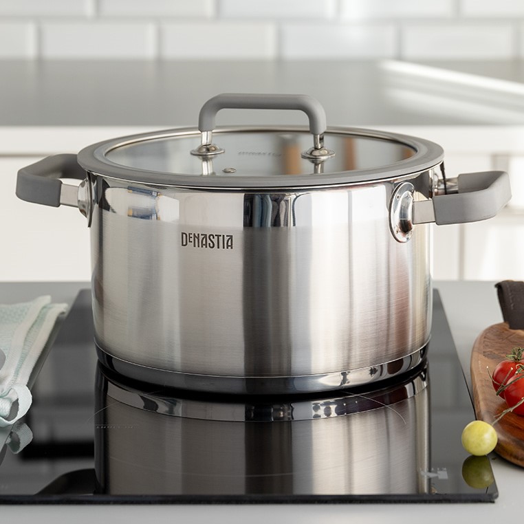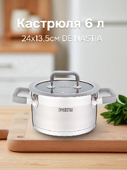 Кастрюля 6л 24x13,5см DE'NASTIA с крышкой силикон серый нержавеющая сталь