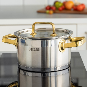 Кастрюля 2,5л 18x10,5см DE'NASTIA с крышкой PVD золотое покрытие фурнитуры нержавеющая сталь