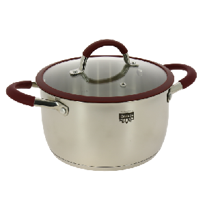 Кастрюля из нержавеющей стали,стеклянная крышка с пароотводом и силиконовым ободком, ручки с силиконом 4л KITCHEN FANTASY Cristell