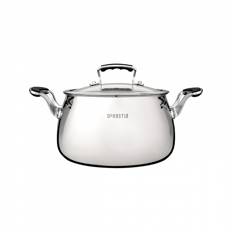 Кастрюля с крышкой 4,95л DE'NASTIA округлая сатин черный нержавеющая сталь/силикон