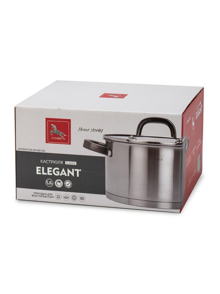 Кастрюля 5,8л PIONEER ELEGANT с крышкой нержавеющая сталь