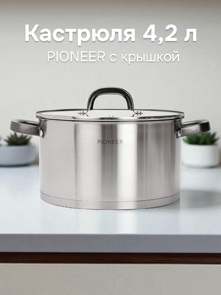 Кастрюля 4,2л PIONEER с крышкой нержавеющая сталь
