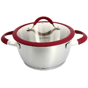 Кастрюля 20*10 см с крышкой из стекла. Объем: 2,9 л. Высококачественная сталь 18/10 STEELAGEN ТМ. Индукционное дно, подходит для всех типов плит. Толщина стенки 0,6 мм. Стальные ручки с силиконовым покрытием цвета Бордо, крепление клепочное. ГАРАНТИЯ 10 лет.
