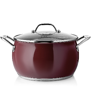 Кастрюля 24*13,5 см из высококачественной нержавеющей стали 18/10 STEELAGEN ТМ с крышкой из стекла. Объем: 6,7 л. Паяное индукционное дно, подходит для всех типов плит. Снаружи жаростойкое покрытие цвета Марсала, матовая полировка внутри. Хромированные ручки, крепление клепочное. ГАРАНТИЯ 10 лет.