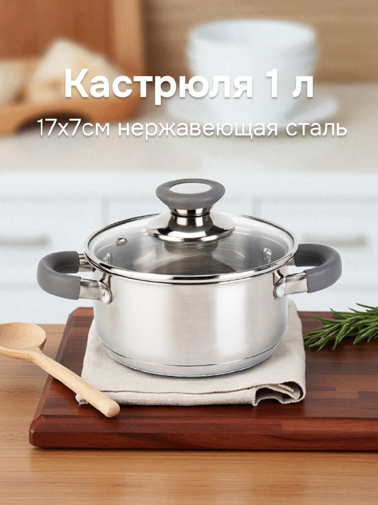 Кастрюля с крышкой 1л 17х7см нержавеющая сталь
