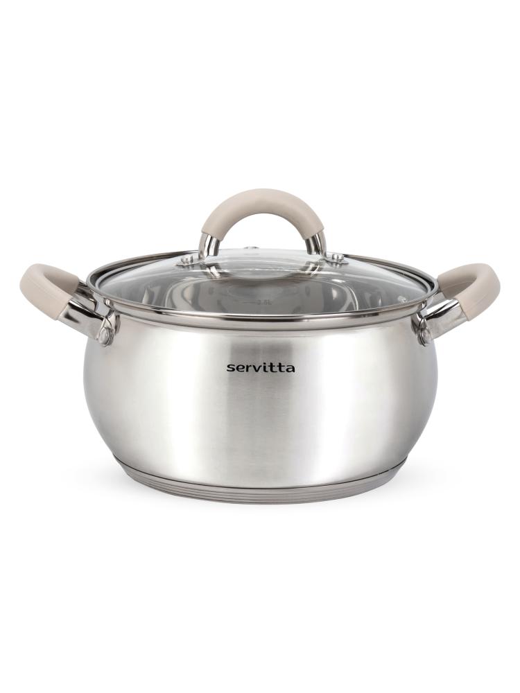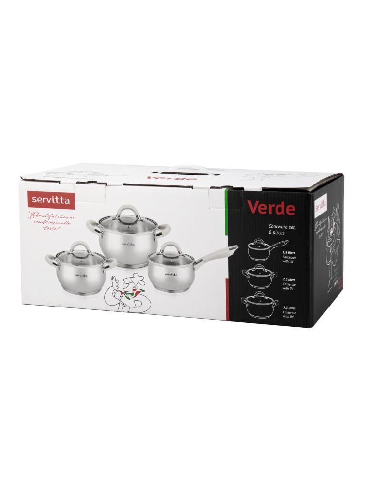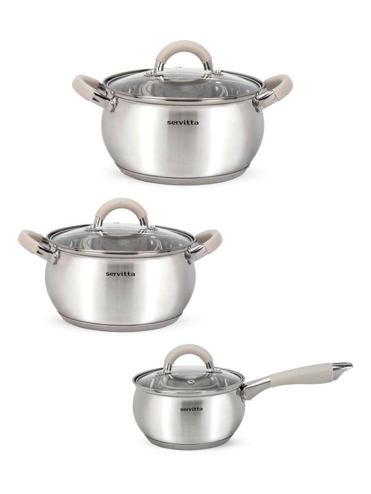 Набор посуды для приготовления 6 предметов SERVITTA Verde (ковш 1,8 л/кастрюля 2,3 л/кастрюля 3,3л) нержавеющая сталь
