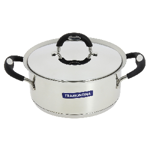"TRAMONTINA. Изготовлено из высококачественной нержавеющей стали 18/10. Крышка из нержавеющей стали. Ручки крепятся способом точечной сварки. Подходит ко всем видам плитТрехслойное дно с теплораспределительным слоем из алюминия 8,3 мм, толщина стенок 0,8"мм. Объем 2,85 литра, диаметр 20 см"