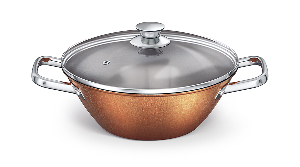 Комбинированная крышка из термостойкого стекла и нержавеющей стали со специальным отверстием для выхода пара.