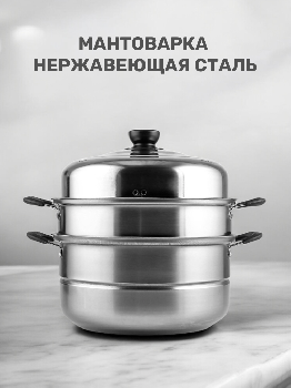 Мантоварка позволит вам одновременно приготовить несколько различных блюд. Она изготовлена из высококачественной нержавеющей стали. Идеально подходит для национальных блюд, таких как манты, пельмени на пару и т.д. Нержавеющие ручки не нагреваются. Крышка изготовлена из термостойкого стекла и нержавеющей стали. Такая крышка позволяет следить за процессом приготовления пищи без потери тепла. Она плотно прилегает к краю кастрюль, сохраняя аромат блюд. Подходит для использование на всех типах плит, включая индукционные. Подходит для мытья в посудомоечной машине.