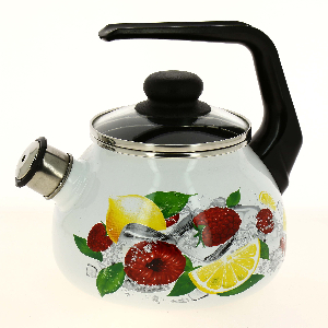Чайник СтальЭмаль Лимон выполнен из высококачественного стального проката, покрытого двумя слоями жаропрочной эмали. Такое покрытие защищает сталь от коррозии, придает посуде гладкую стекловидную поверхность и надежно защищает от кислот и щелочей. Носик чайника оснащен свистком, звуковой сигнал которого подскажет, когда закипит вода. Чайник оснащен фиксированной ручкой из пластика и стеклянной крышкой, которая плотно прилегает к краю благодаря особой конструкции. Внешние стенки декорированы красочным рисунком в виде фруктовой россыпи. Эстетичный и функциональный чайник будет оригинально смотреться в любом интерьере. Подходит для всех типов плит, включая индукционные. Можно мыть в посудомоечной машине.