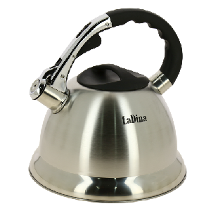 Чайник Ladina изготовлен из высококачественной нержавеющей стали. Изделия из нержавеющей стали не окисляются и не впитывают запахи, благодаря чему вы всегда получите натуральный, насыщенный вкус и аромат напитков. Эргономичная ручка выполнена из нержавеющей стали и бакелита и удобно лежит в руке. Крышка чайника оснащена свистком, который позволяет контролировать процесс кипячения или подогрева воды. Поверхность чайника серебристая с зеркальным блеском. Эстетичный и функциональный чайник будет оригинально смотреться на любой кухне. Подходит для мытья в посудомоечной машине