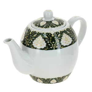 Чайник для заваривания чая изготовлен из качественного фарфора. Посуда из фарфора безопасна для здоровья и устойчива к царапинам. Чайник и крышка декорированы сложным и изящным узором с позолотой в восточном стиле. Элегантный заварочный чайник из фарфора украсит ваш кухонный стол, а также будет уместным подарком к любому празднику. Посуда этой серии подходит для ручной мойки с применением жидких моющих средств.
