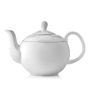 Заварочный чайник 1220 мл из костяного фарфора. Форма круглая. Рисунок Завитки. Цвет серебро. Разрешено использовать в посудомоечной машине и в микроволновой печи. Гарантия 1,5 года.