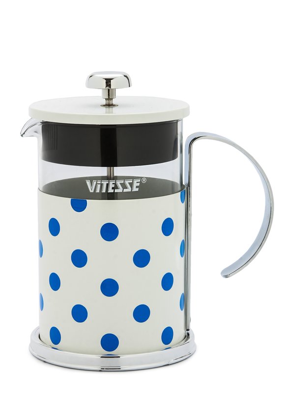 Френч-пресс 800мл VITESSE синий горох стекло/нержавеющая сталь