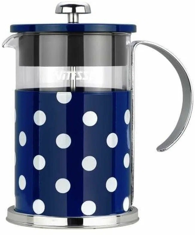 Френч-пресс 800мл VITESSE белый горох стекло/нержавеющая сталь
