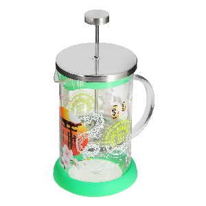 Френч-пресс Japan Viva, изготовленный из нержавеющей стали и жаропрочного стекла, прекрасно подойдет для заваривания кофе, чая, травяных настоев и даже какао. Основными достоинствами френч-пресса являются:- возможность регулировать время заваривания, что оказывает влияние на вкус напитка и его крепость, возможность комбинировать напиток с различными наполнителями (специи, травы). Френч-пресс имеет металлический сетчатый фильтр с загнутыми краями, который обеспечивает высокое качество фильтрациинапитка. Ручка из пищевого пластика не нагревается и безопасна в использовании. Яркая подставка из силикона препятствует скольжению чайника. Эстетичный и функциональный френч-пресс Viva Japan будет оригинально смотреться в любом интерьере. Высота френч-пресса (с учетом крышки): 18,5 см. Высота стенки колбы: 16 см. Диаметр (по верхнему краю): 9,5 см.