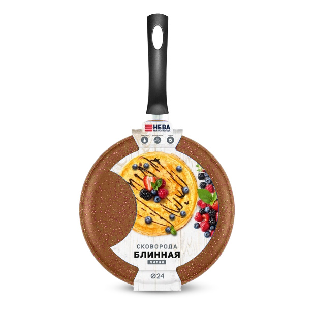 Сковорода блинная 24см НЕВА МЕТАЛЛ ПОСУДА Литая orange алюминий