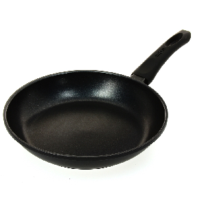 Современная сковорода Matissa Gold изготовлена из литого алюминия с двойным покрытием Daikin. Толщина стенок 2,4 мм, а дна – 5,5 мм. Дно проточено и снабжено термораспределительным диском, что позволяет достичь эффекта равномерного нагрева на плитах любого типа. Сковорода снабжена ручкой длиной 20 см, которая покрыта силиконом и не скользит. Чтобы сковорода Matissa Gold прослужила долго, рекомендуется использовать щадящий режим посудомоечной машины или мыть вручную.