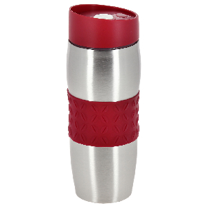 "Термокружка Agness, 400мл, нержавеющая сталь, силикон.Термокружка Agness объёмом 400 мл изготовлена из нержавеющей стали, снабжена крышкой и силиконовой вставкой насыщенного красного цвета. Эта замечательная качественная термокружка прекрасно сохран""яет тепло,имеет удобную крышку с дозатором. Одним нажатием на кнопку активируется отверстие для питья, при отпускании кнопки оно плотно закрывается. Двойные стенки кружки и отличная вакуумная изоляция позволяют сохранить напитки горячими до четырех"" часов.Термокружка AGNESS - ваш незаменимый помощник в повседневной жизни! Кружка помещается в подстаканник автомобиля. Удобная прорезиненная вставка в центре позволяет держать ее не опасаясь выронить. Крышка имеет специальную форму, удобную для питья."