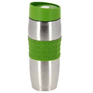 "Термокружка Agness, 400мл, нержавеющая сталь, силикон.Термокружка Agness объёмом 400 мл изготовлена из нержавеющей стали, снабжена крышкой и силиконовой вставкой ярко-зеленого цвета. Эта замечательная качественная термокружка прекрасно сохраняет те""пло, имеетудобную крышку с дозатором. Одним нажатием на кнопку активируется отверстие для питья, при отпускании кнопки оно плотно закрывается. Двойные стенки кружки и отличная вакуумная изоляция позволяют сохранить напитки горячими до четырех часов"".Термокружка AGNESS - ваш незаменимый помощник в повседневной жизни! Кружка помещается в подстаканник автомобиля. Удобная прорезиненная вставка в центре позволяет держать ее не опасаясь выронить. Крышка имеет специальную форму, удобную для питья."