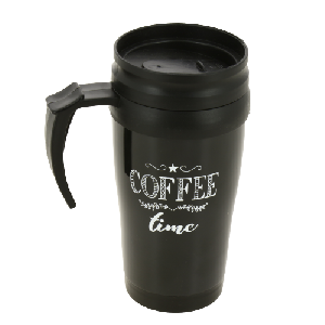 Термокружка Coffee time пригодится во время поездок, в походах, дома и на работе. Ручка комфортно лежит в руке, не скользит. Изделие сделано из пластика и силикона. Герметичная крышка не протекает, обеспечивает теплоизоляцию.