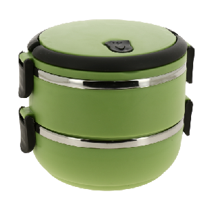 Двухярусный круглый ланч-бокс, объем-1,4 л предназначен для хранения еды, изготовлен из пищевых материалов и высококачественной нержавеющей стали, герметичная конструкция крепления крышки, выдерживает температуру от -20 - 120 °С